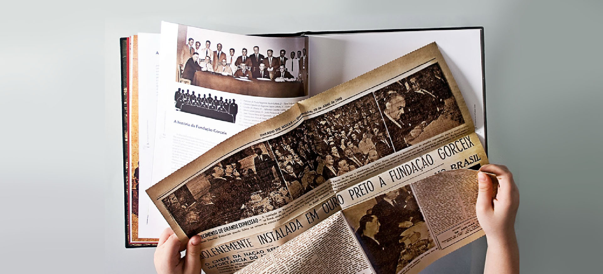 Edição de Livro Institucional Comemorativo e de registro histórico para a Fundação, 145 páginas.