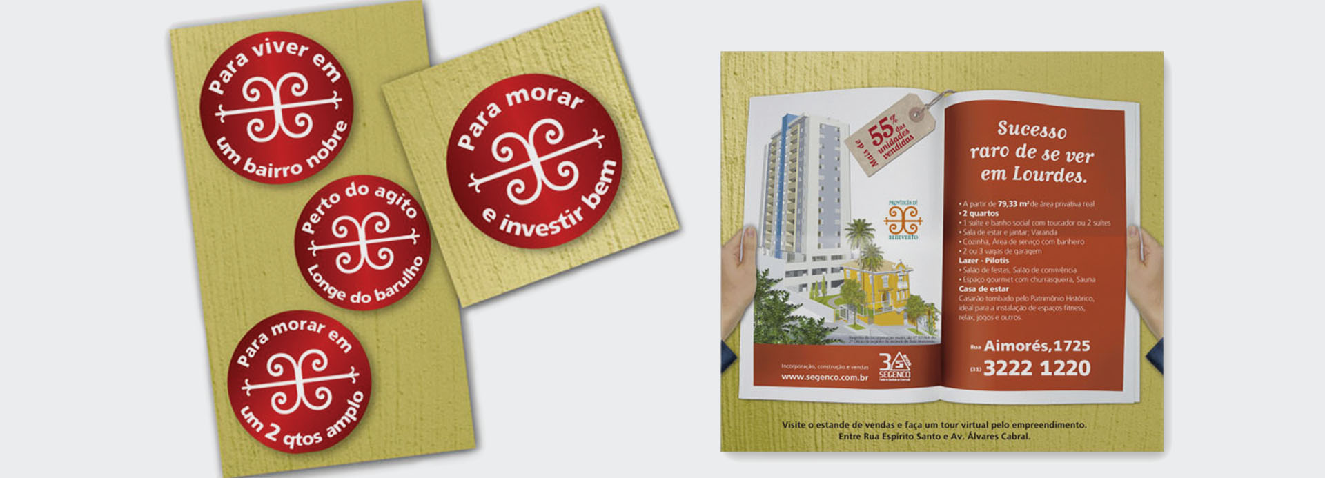 Criação de Campanha para lançamento de empreendimento imobiliário. Marca, Ação e Brinde promocional, Catálogo de vendas, Folder, Volante, Hot site, Folder eletrônico, Anúncio de revista, Anúncio de jornal, Painel de banca de revista.
