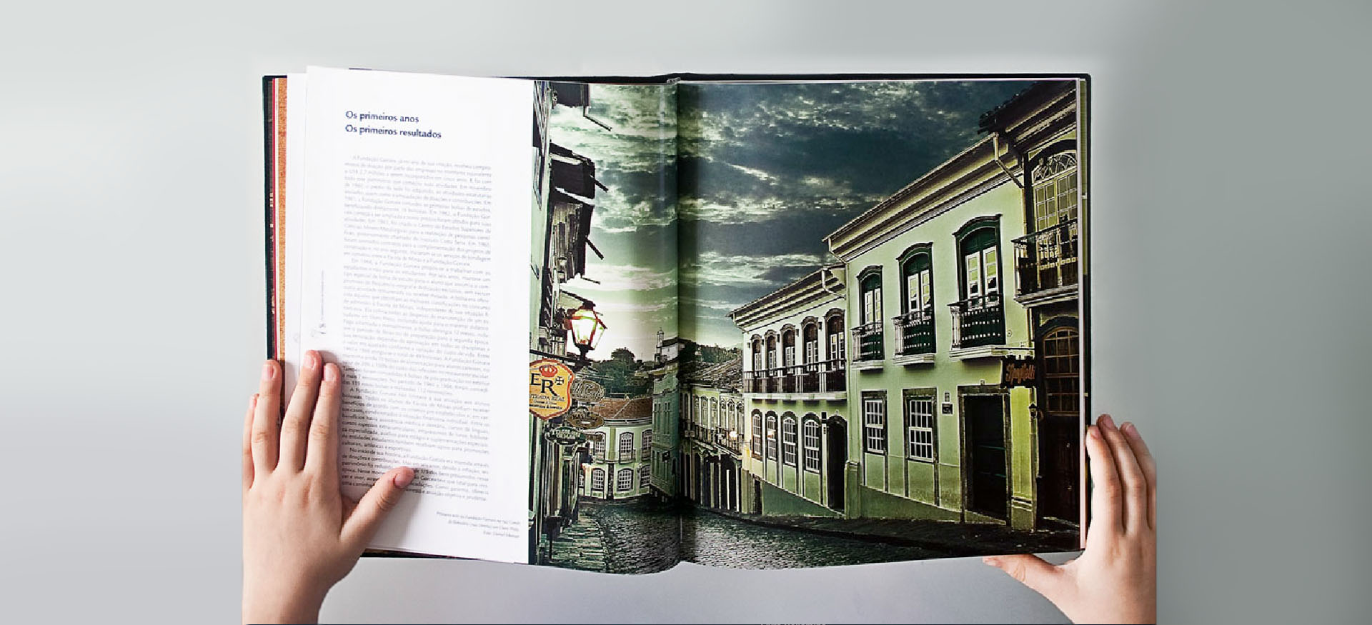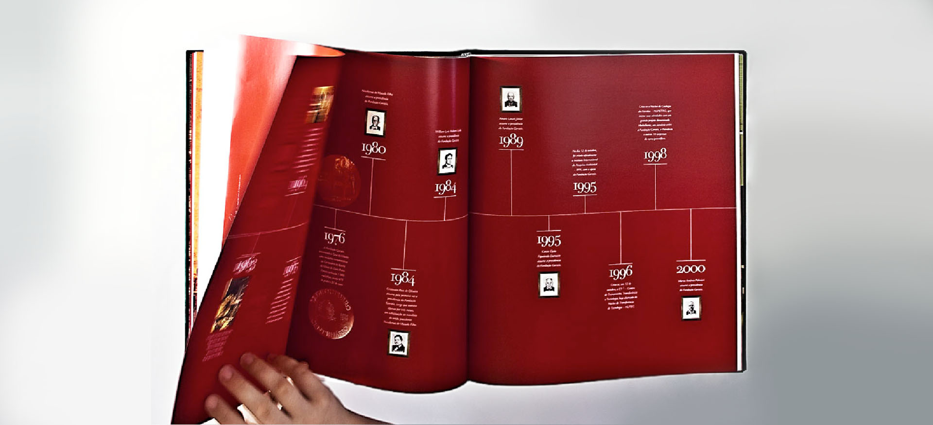 Edição de Livro Institucional Comemorativo e de registro histórico para a Fundação, 145 páginas.