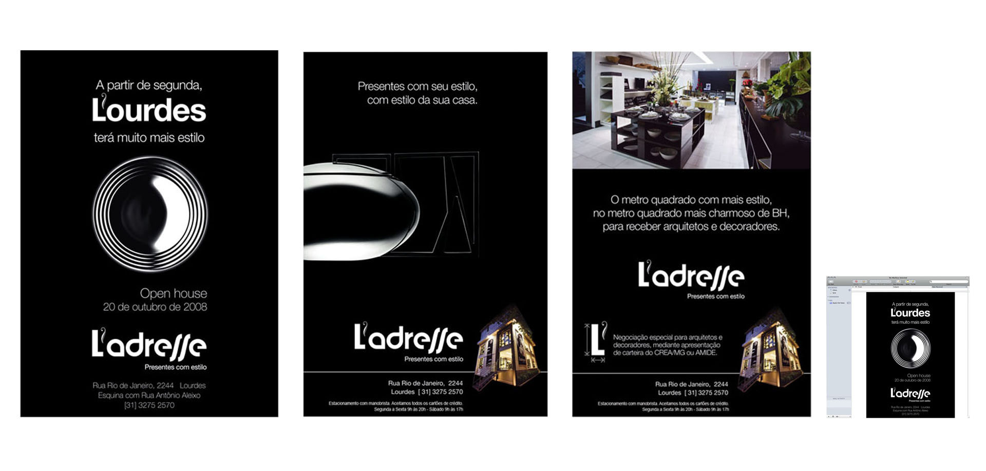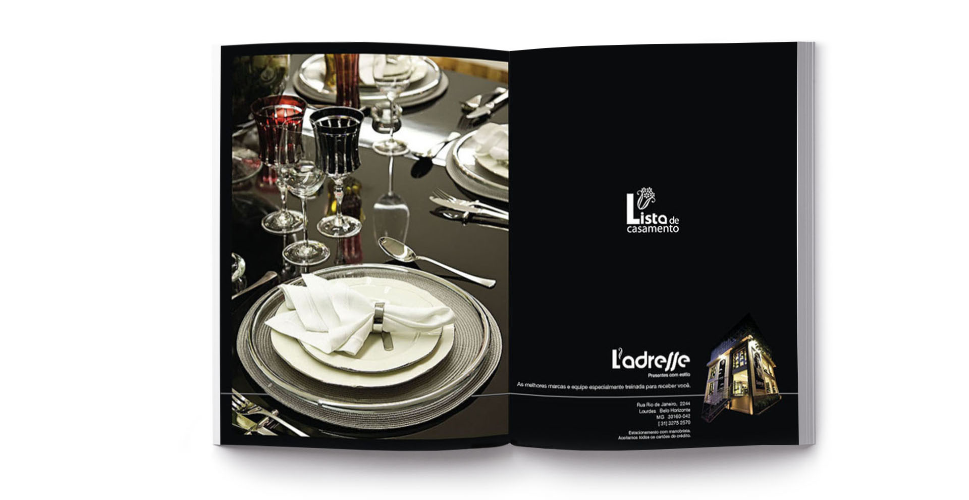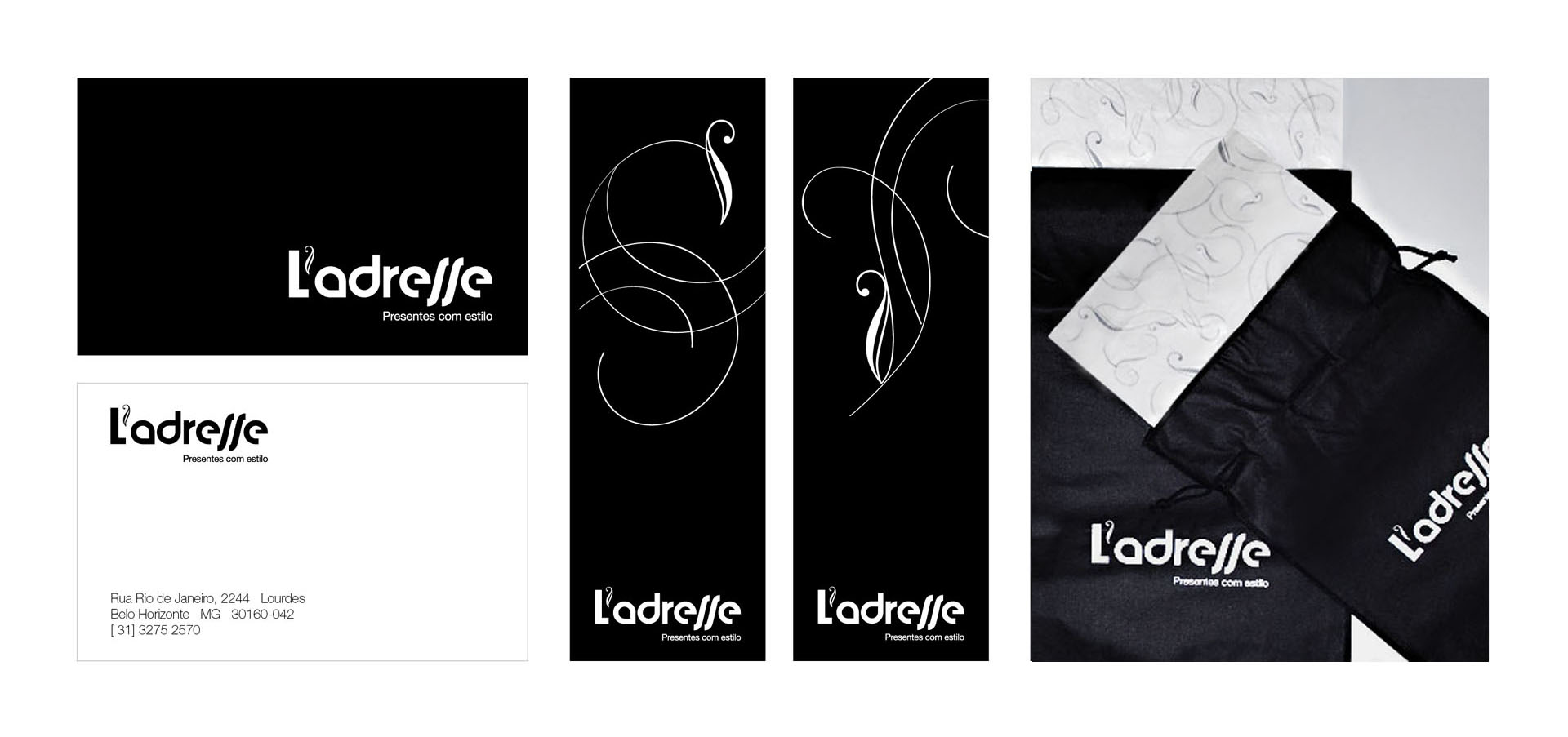 Criação de Marca, Identidade Visual, Cartão de Visita, Cartão para presentes, Embalagem, Folder, Mídia impressa e digital. Estudo de Fachada e Sinalização externa.